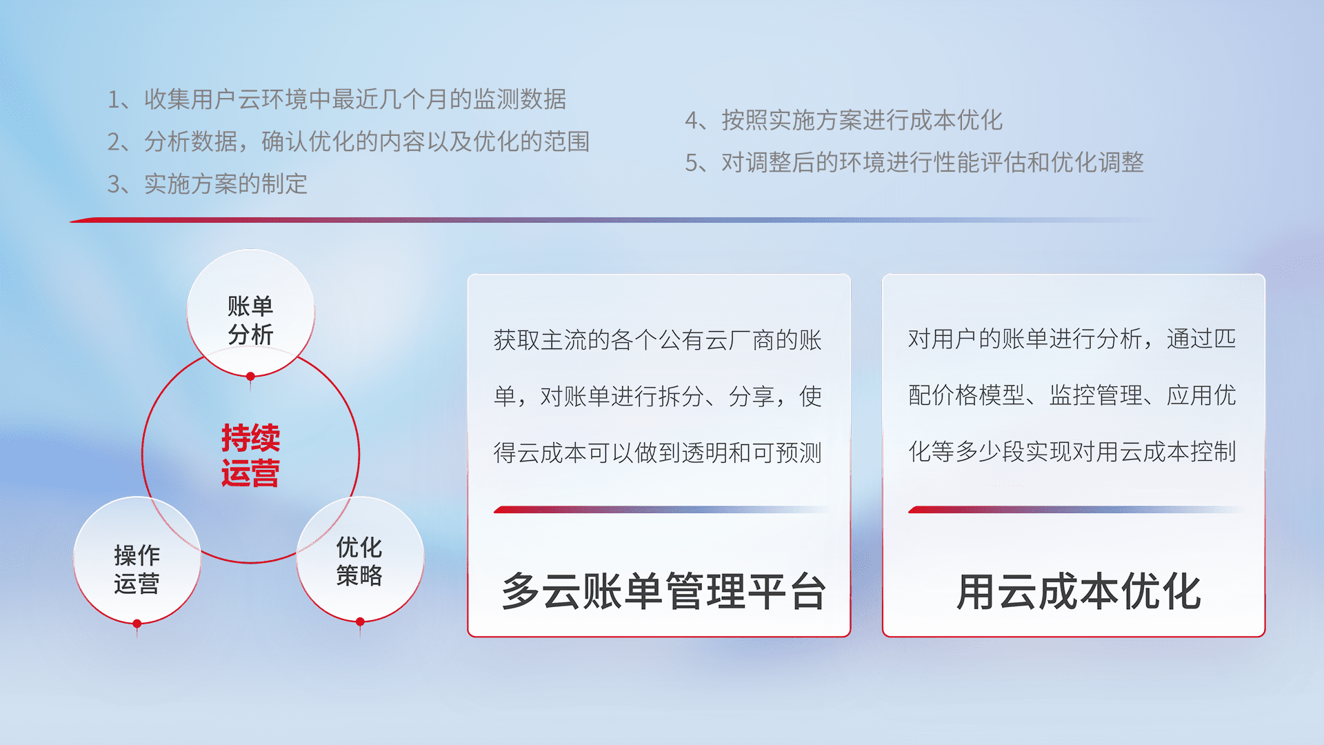 监控业务系统资源开销,,,对资源的消耗精确计量,,实现费用的透明化管理,,不断提升资源使用率,,,调整资源购买方式,,,,降低资源费用成本,,用云成本可预测、、、用云费用可优化,,云资源配额有据可依。。